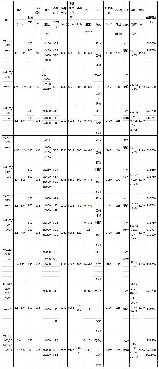 我公司研制開發(fā)了液壓牽引和電牽引(變頻、開關(guān)磁阻)兩大系列采煤機。適應(yīng)于煤質(zhì)中硬或中硬以下的薄煤層、中厚煤層,含有少量夾矸的長壁式工作面,可在有瓦斯或煤塵爆炸危險的礦井中使用,并可在海拔不超過2000m、周圍介質(zhì)溫度不超過+40℃或不低于-10℃、無足以腐蝕和破壞絕緣的氣體與導電塵埃的情況下可靠地工作。
