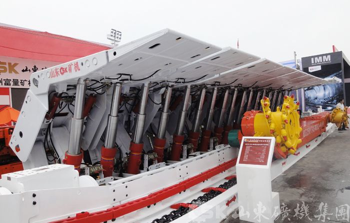結(jié)構(gòu)特點:多電機驅(qū)動,電機橫向布置,傳動系統(tǒng)簡單;框架結(jié)構(gòu),零部件安裝和維修方便;部件間采用高強度液壓螺栓副聯(lián)接;裝有彈性扭矩軸,保護截割傳動系統(tǒng);液壓系統(tǒng)集成性強,管路簡單,操作點多;開關(guān)磁阻電機調(diào)速,適用重載頻繁啟動,功率損耗小,效率高;采用高效強力耐磨鎬形齒滾筒;具有功率、電機溫度、水壓、油壓、漏電等保護;可與多種槽寬的工作面刮板輸送機配套,用于綜采或綜放工作面。